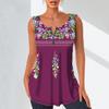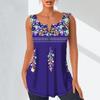 Women's Fashion V Neck Shirts Casual Tops T-shirt Ladies 3D Red Flowers Print Vest Plus Size Sleeveless Blouse Tank Tops