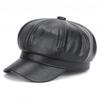 Octagonal Cap Women Adjustable Faux Girls Retro Peaked Beret Cap Leather Hats Solid Color Winter Autumn