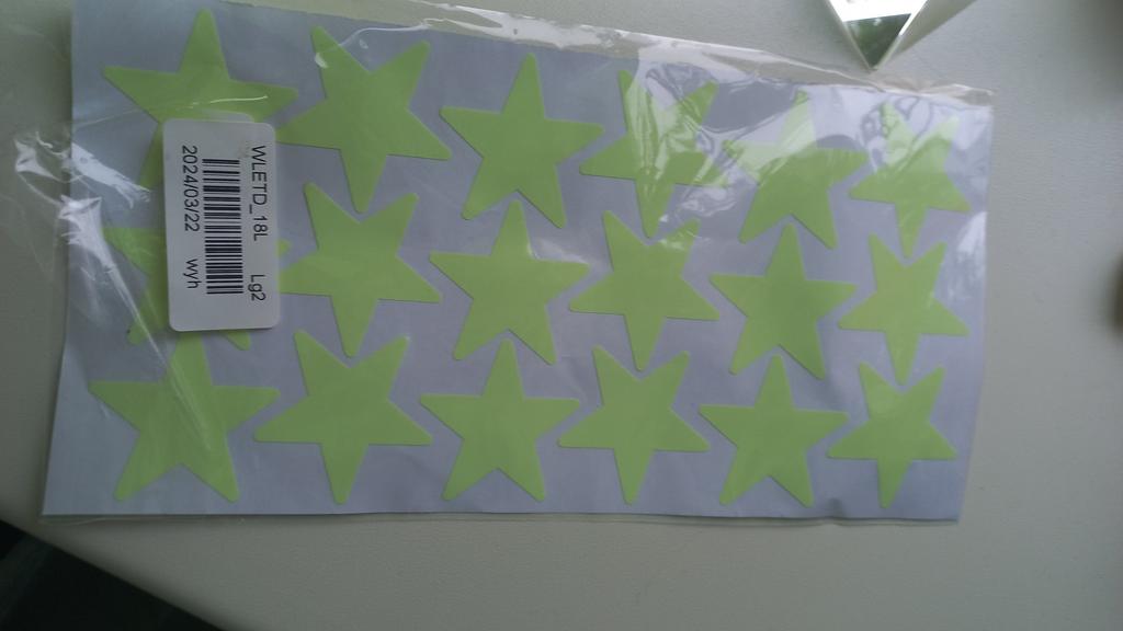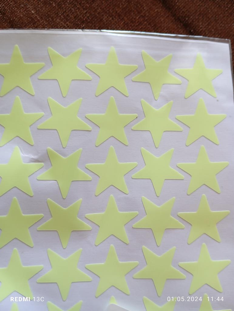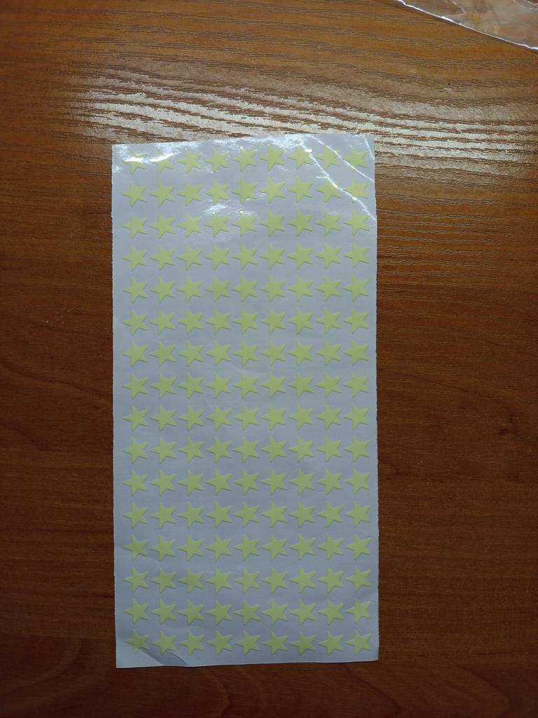 Glowing stars made of thick plastic film with a sticky layer.