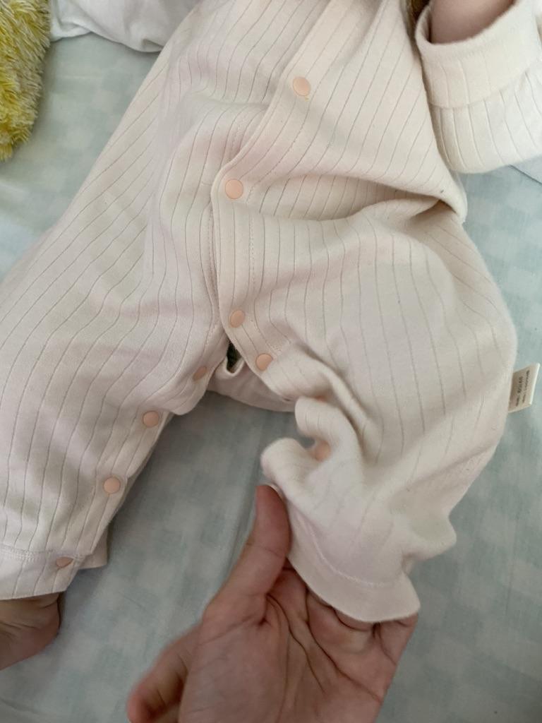 The fabric is soft, I took 80, we are 10 months old and still too big. Satisfied with the quality