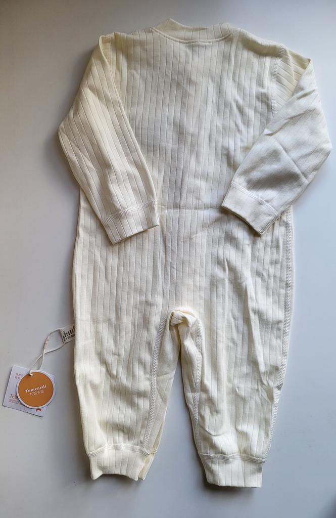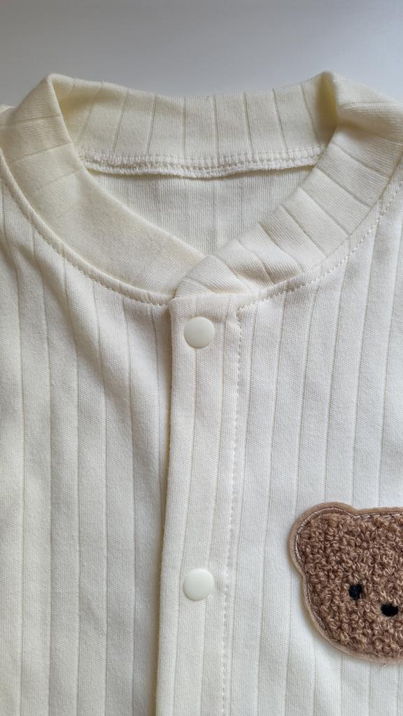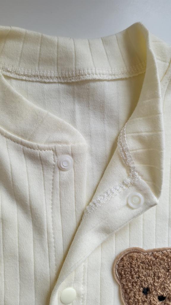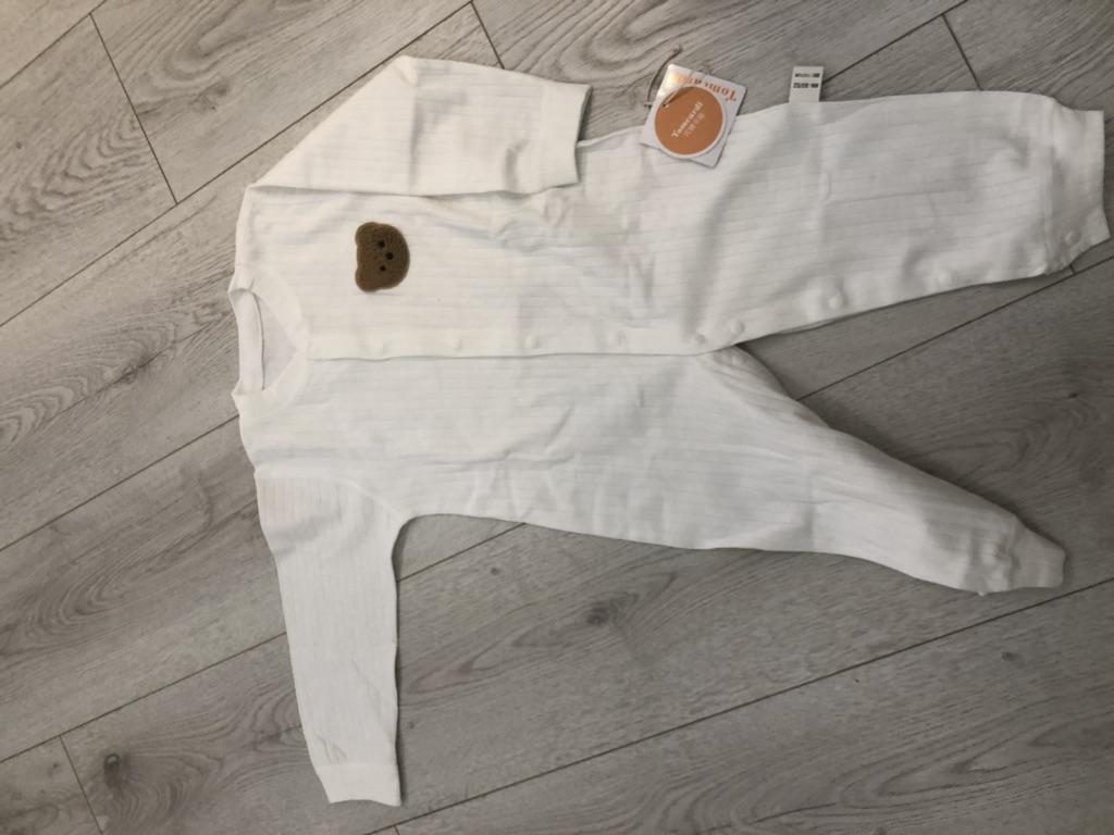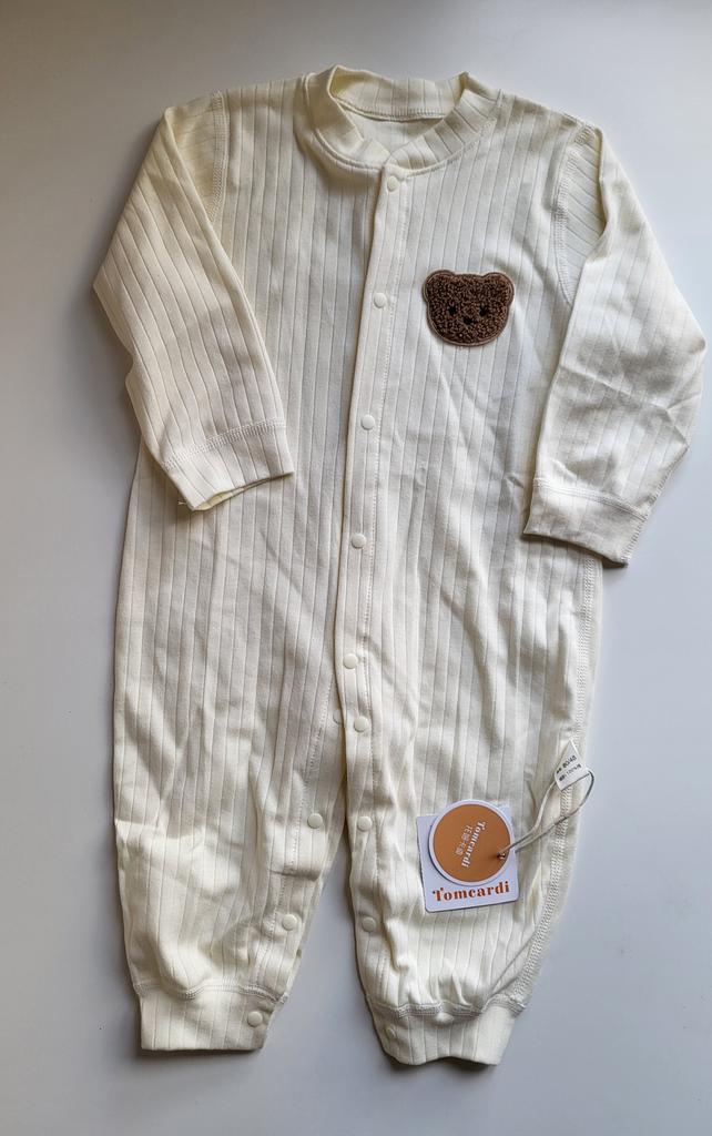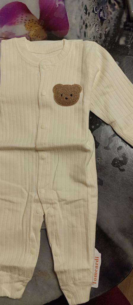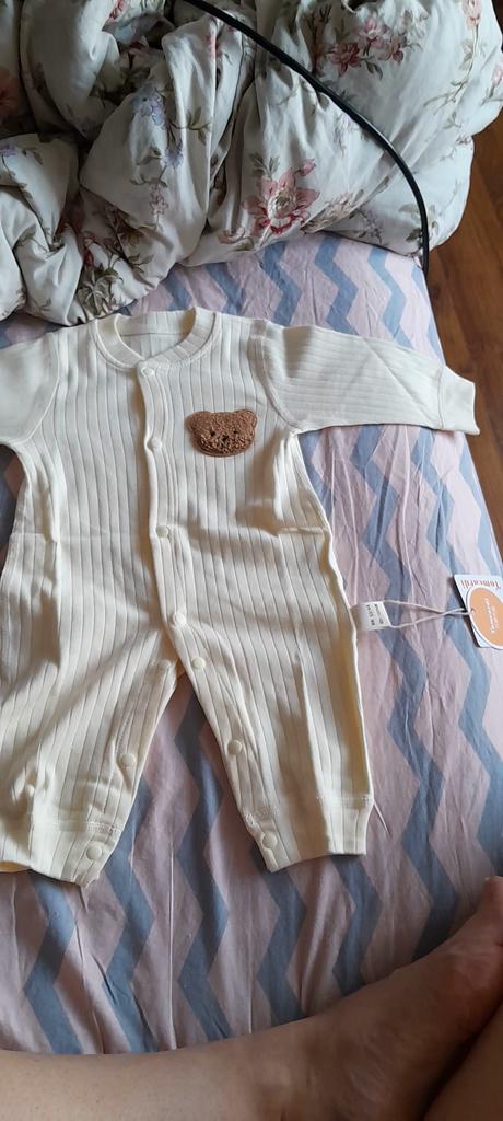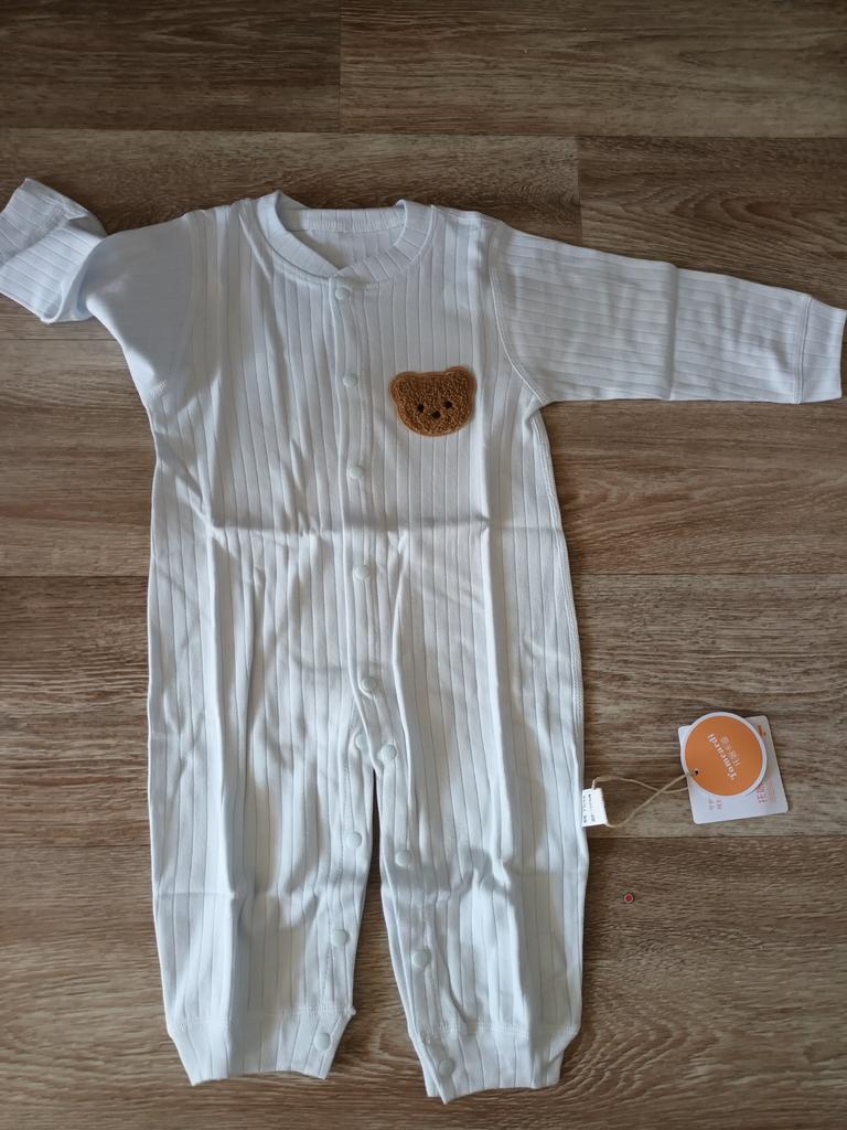Wonderful sleepsuit, soft, thick cotton. Excellent quality, seams are even, threads do not stick out, survived two washes perfectly. For a child 74 cm tall, I took size 90, with a good reserve, but not really big.