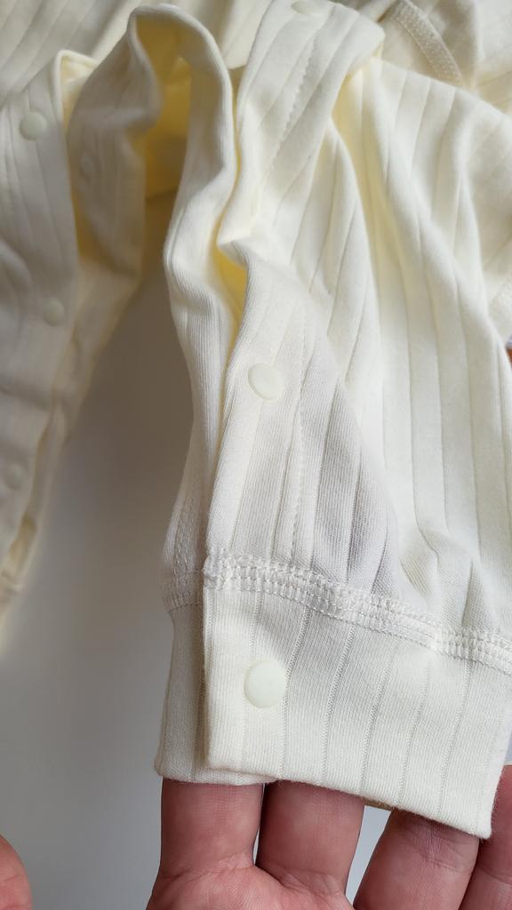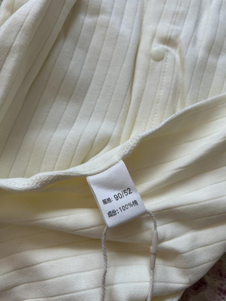 This size is for about six months. Ribbed knitwear. Nice to the touch. With buttons.