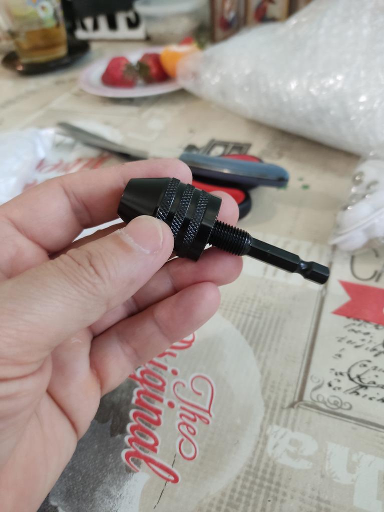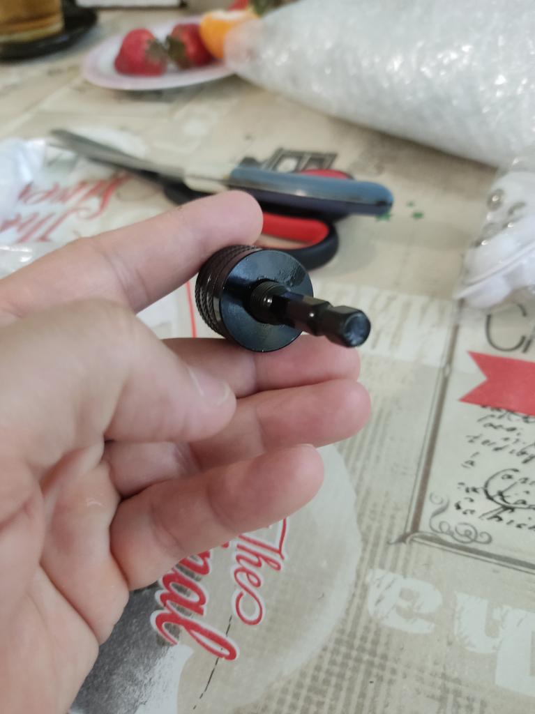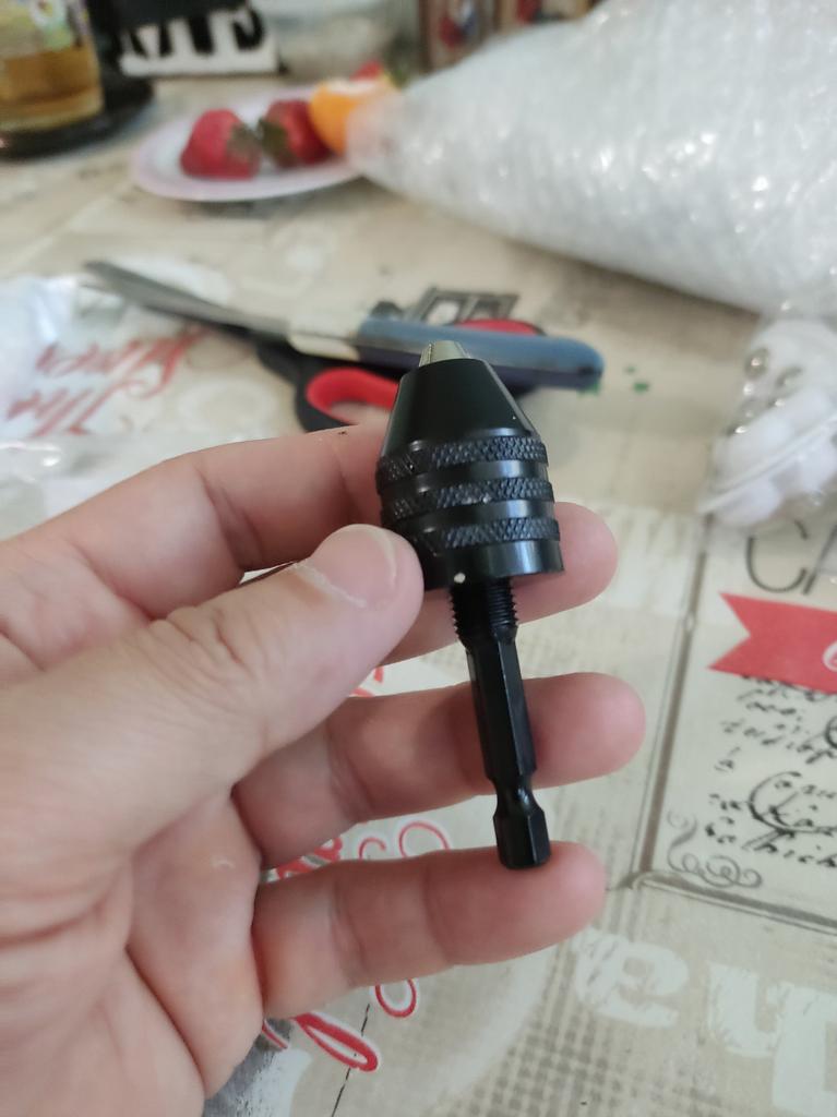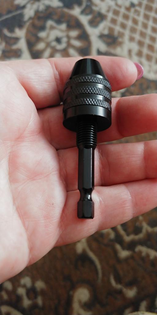 Good chuck, only for wood and plastic work. The drill bit is fixed by hand without a key