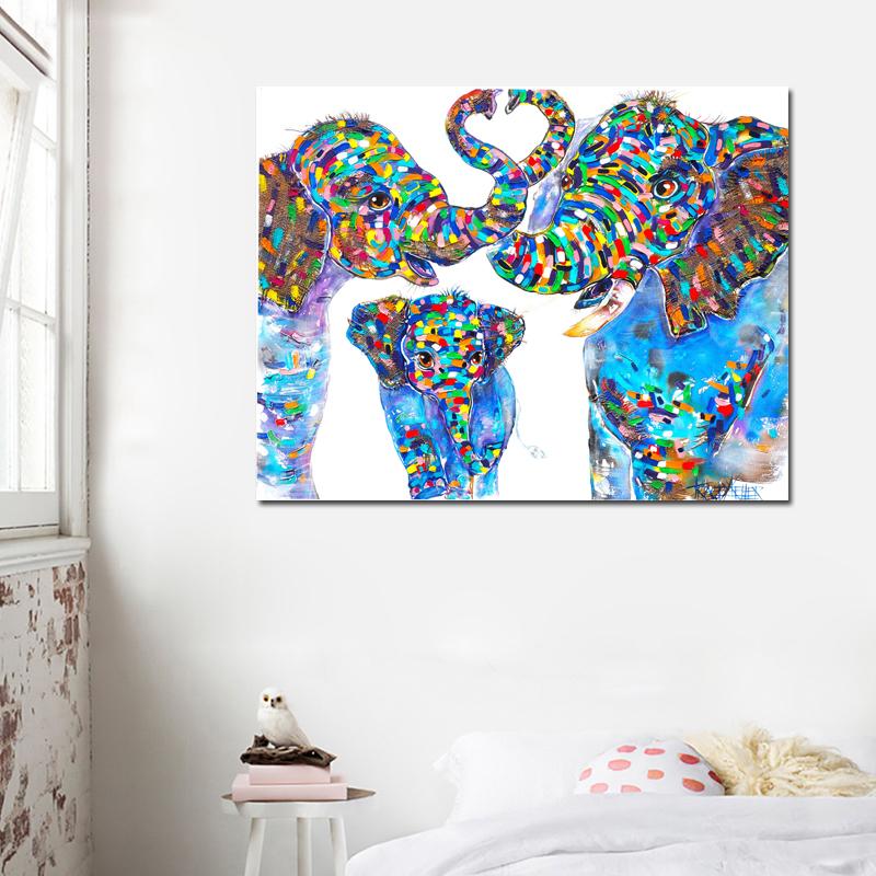 Watercolor Elephant Family Canvas Painting Wall Art Animal Poster For Living Room Canvas Art Print Blue Color No Frame