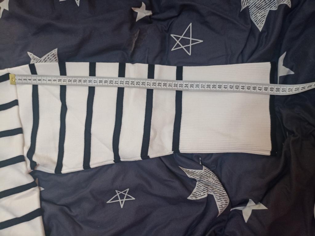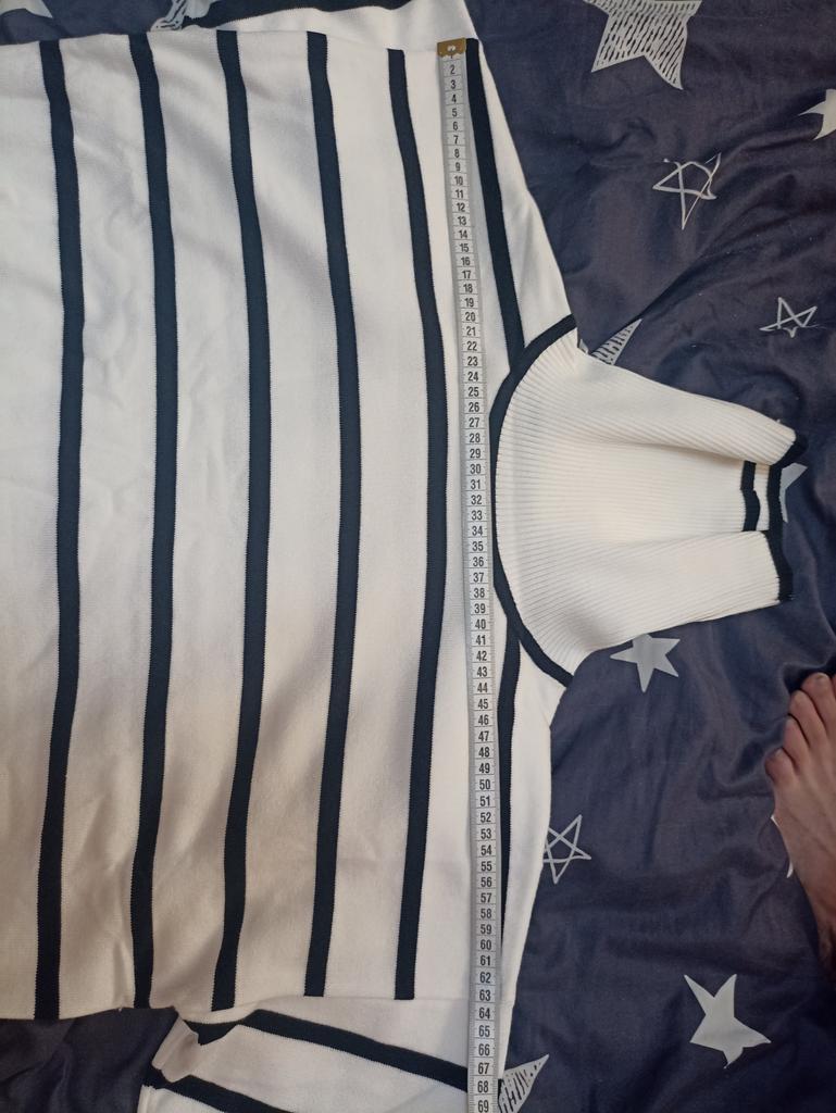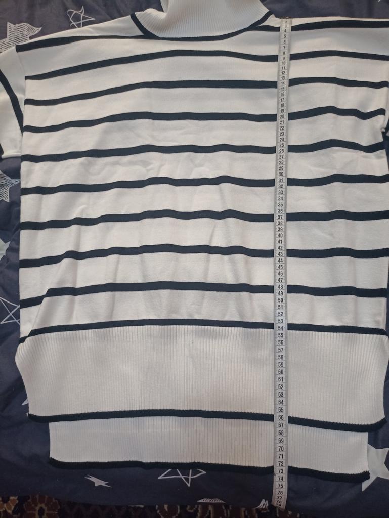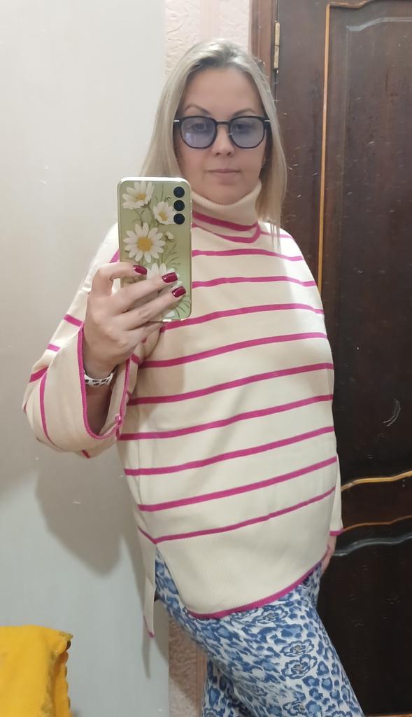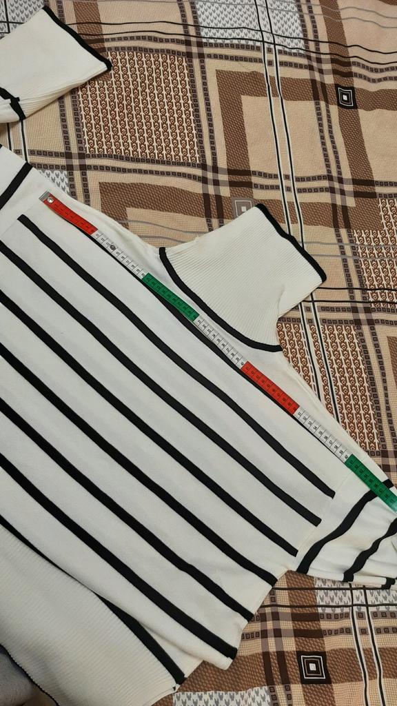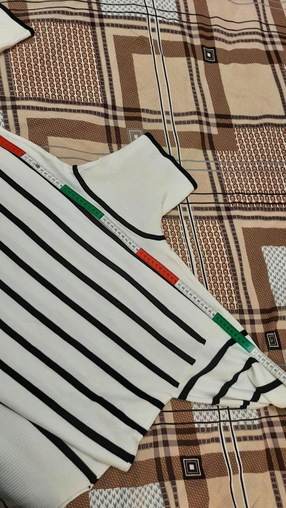 Cool sweater comes in one size for my parameters bust 104 waist 97 hips 114 fit me very well freely there is a reserve for about 2-3 more sizes the length of the sleeves is also good I folded it up about 10 cm the thief is also large and folds in well two layers, warm, comfortable, beautiful sweater, I’m very pleased
