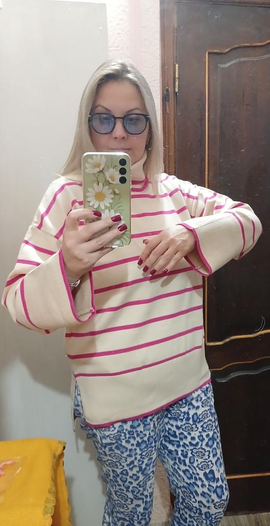 Autumn and Winter Women's Sweater Knit Sweater Pullover Clashing Stripes High Neck Loose Casual Sweater
