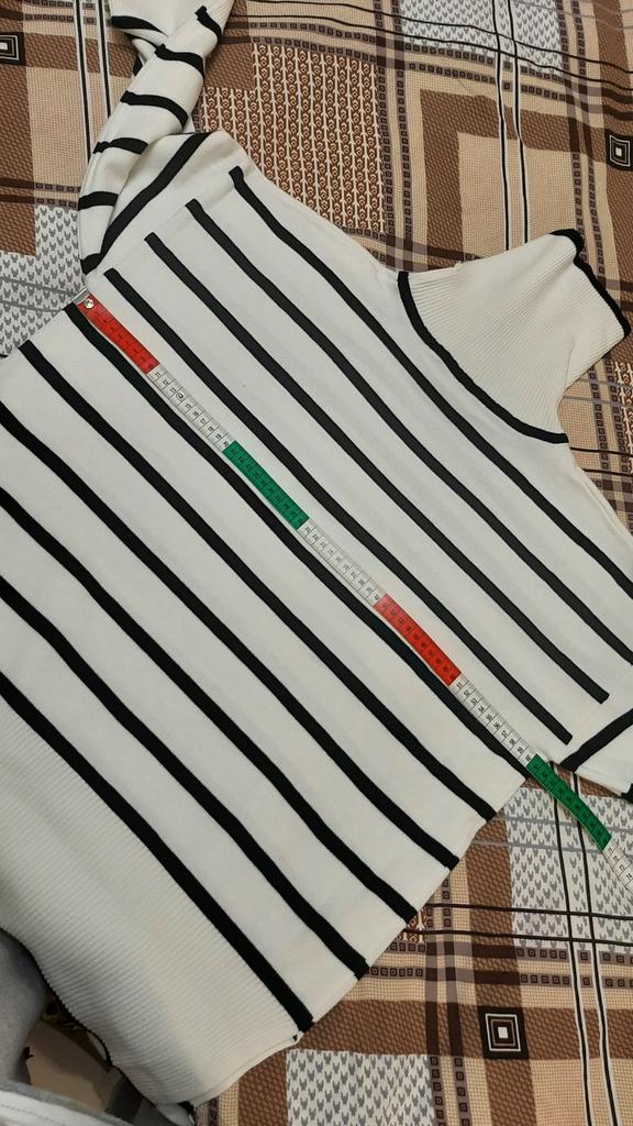 Poorly sewn, wide and long sleeves. Still made incorrectly slits because there is elastic at the hem pulls.