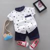 Summer Boy Short-sleeved Star Printed Shirt Children Stand Collar Clothing Set Baby Kids Cotton Suit