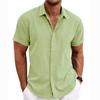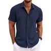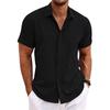 EU Size Men's Linen Short Sleeve Shirt Loose Solid Color Large Size Men Tops
