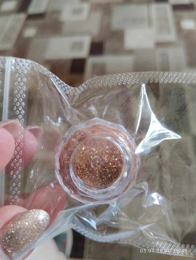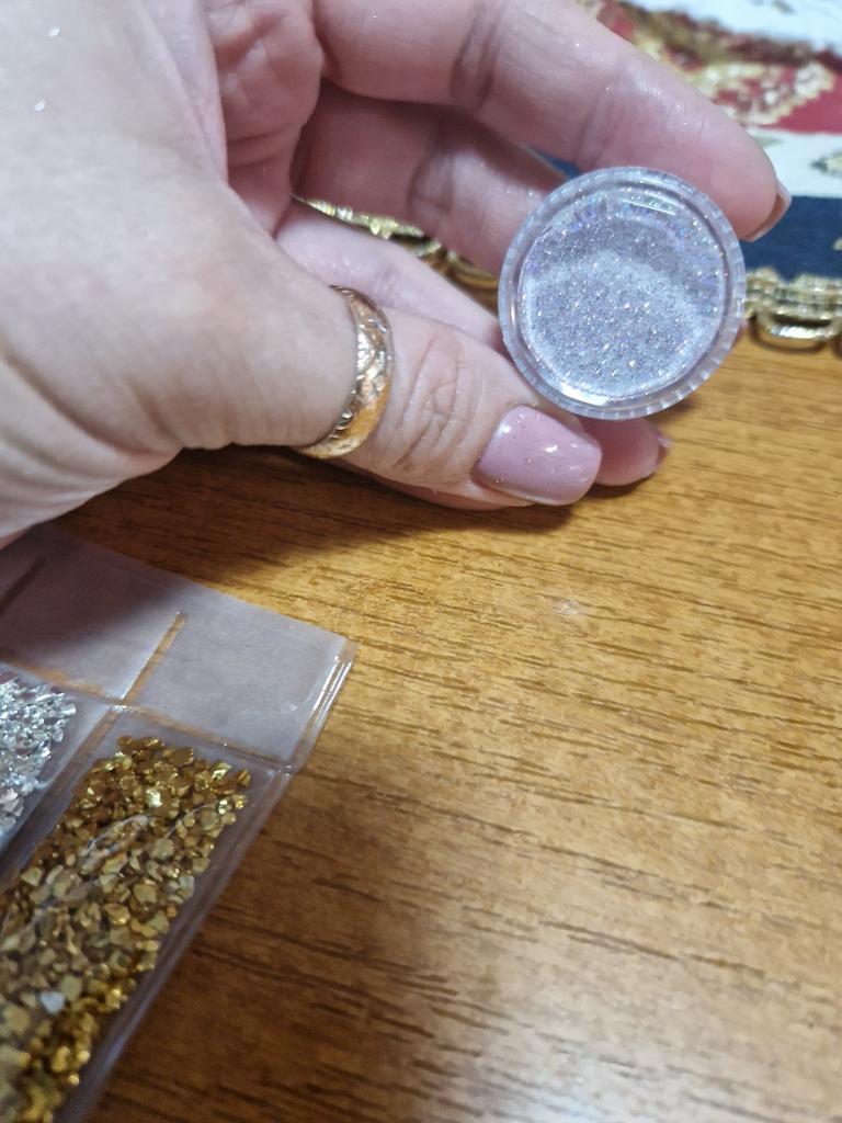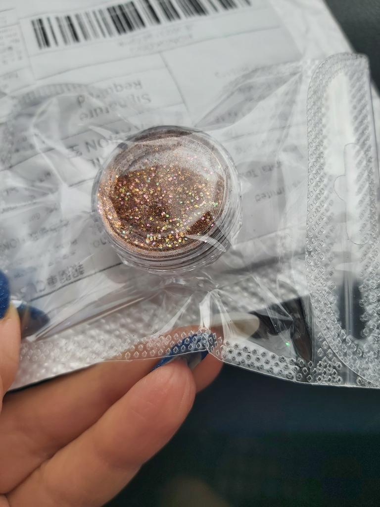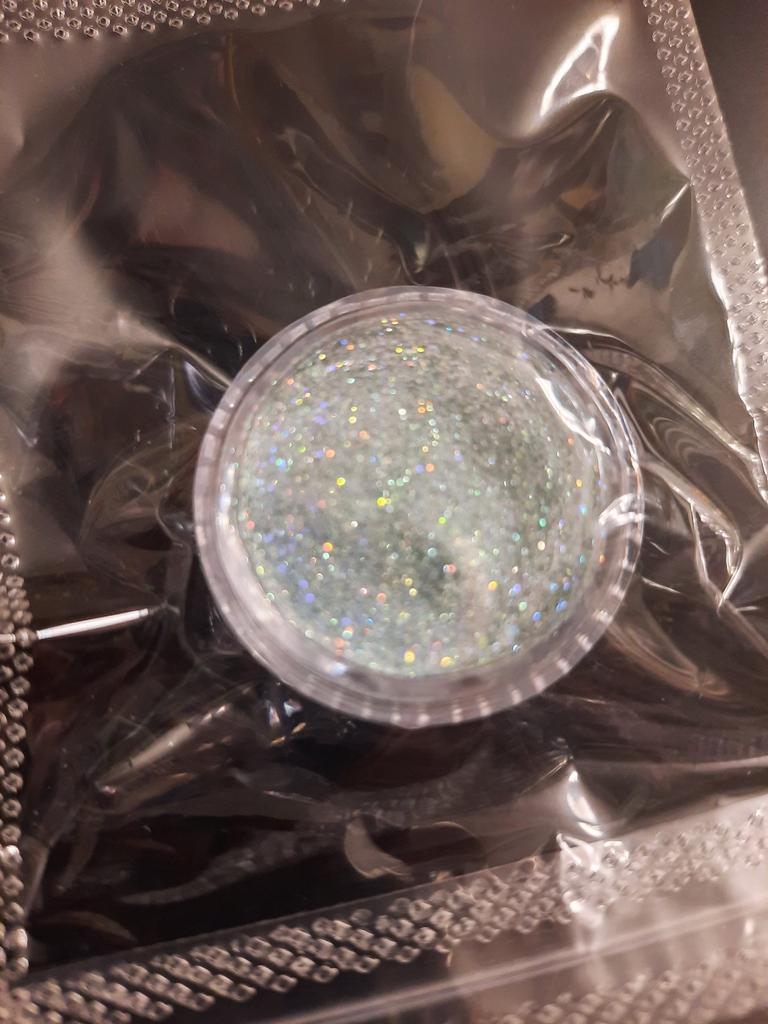 I received the glitter. It shines superbly, it's not so visible in the photo. I think it will look great on the nails.