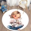 Floor Mat Animal Little Girl Cute Round Rug Mat Living Room Rug Children's Room Decoration Door Mat Pet Mat
