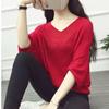 Thin Section V-neck Pullover Knit Sweater Women's Tops Large Size Seven-minute Sleeve Skeleton Sweater Women Loose Shirt