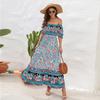 GMXIA New Beach Vacation Dress One Shoulder Puff Sleeve Midi Dress