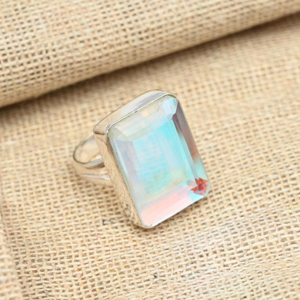 Faceted Mistic Topaz 925 Sterling Silver Handmade Antique Ring Jewelry Gift For Her