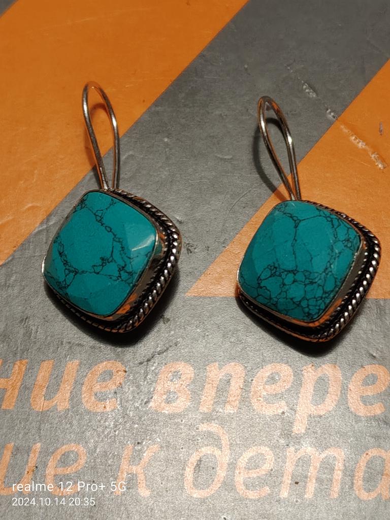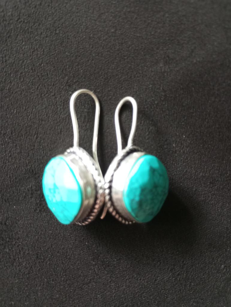 Santa Rosa Turquoise Gemstone 925 Sterling Silver Handmade Unique Jewelry Earring