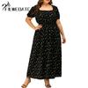 Filweoatc Puff Sleeve Long Plus Size Women's Dress Temperament Polka Dot Skirt