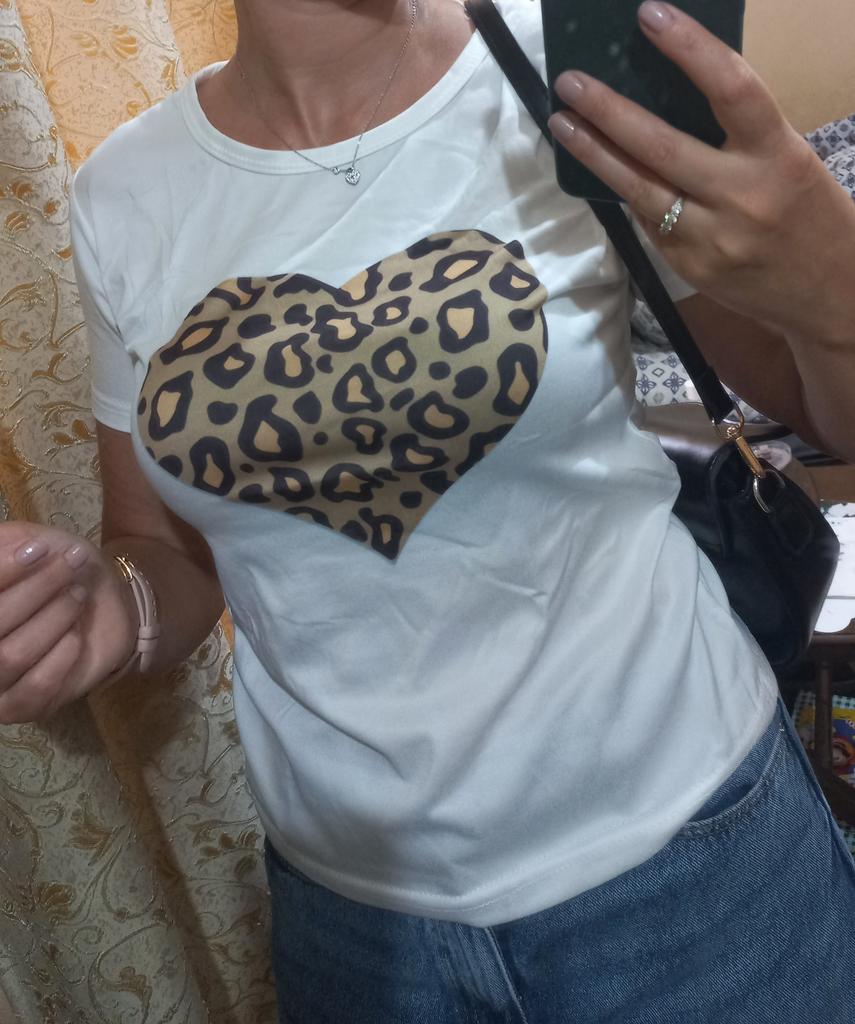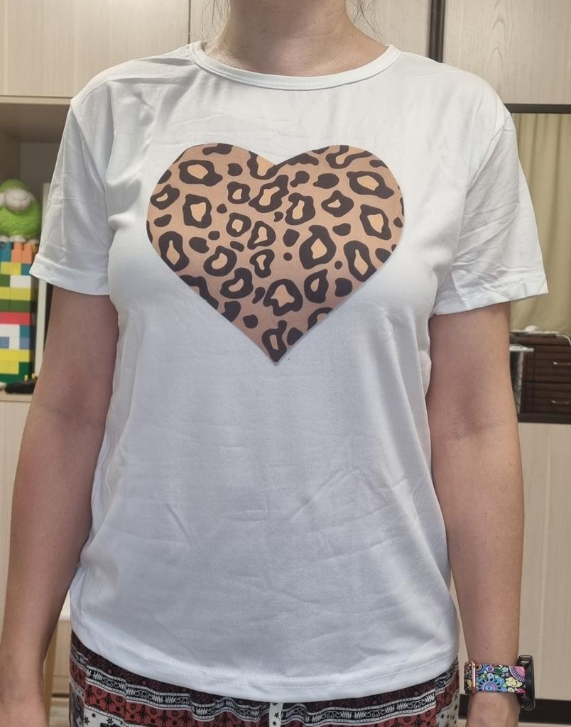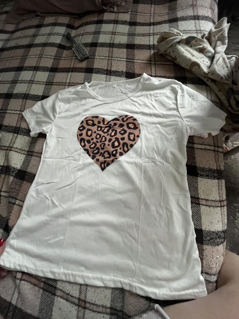 (Asian Size) Women Clothing Leopard Love Trend Cute Sweet 90s Print Tee Top Fashion T Shirt Woman Female Short Sleeve Graphic T-shirts