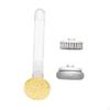 - 【3pcs Brush Heads】: This washing up brush set with different brush heads: 1 stiff brush head, 1 steel wire brush head and 1 sponge brush heads.