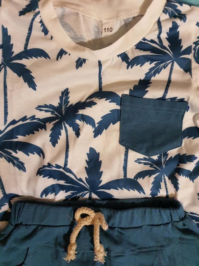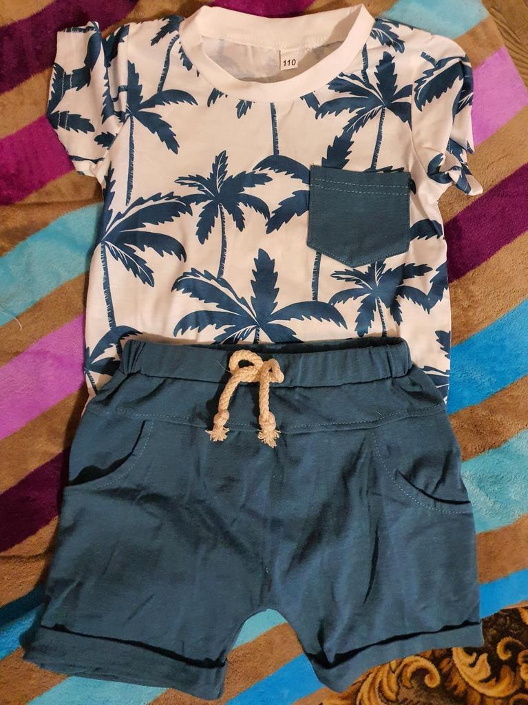 Infant Boy Summer Clothes Suits Beach Style Tree Print Short Sleeve Crew Neck T-Shirts and Elastic Waist Shorts 2Pcs Set