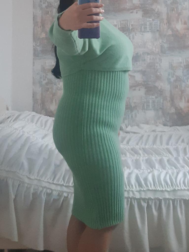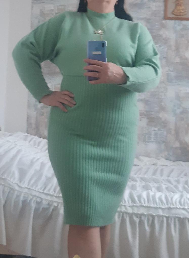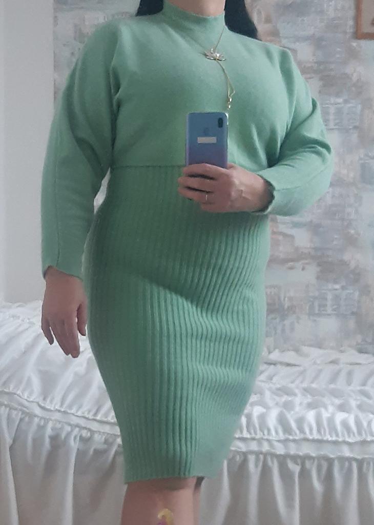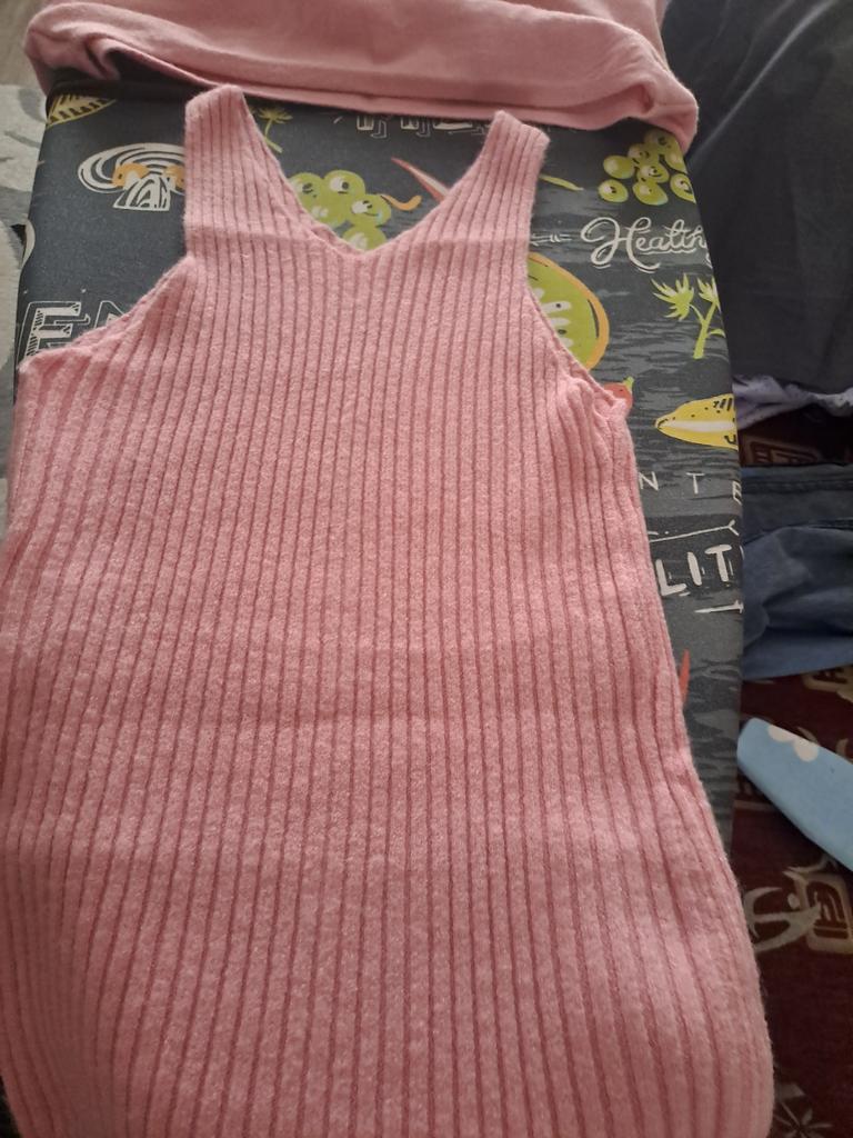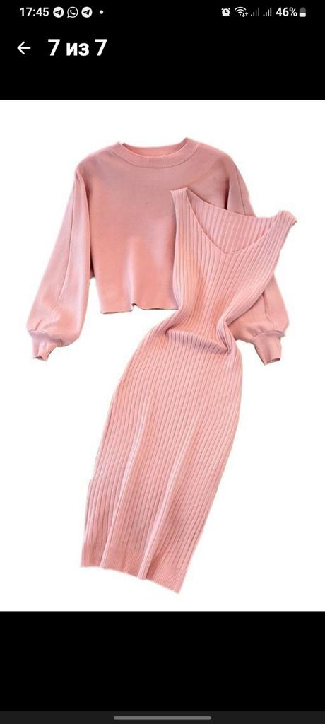 Autumn and Winter Fashion Short Loose Round Neck Sweater Two Piece Set Women's Elastic Tight Tank Top Skirt Mid Length Dress