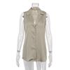 2023 Summer Elegant Sleeveless Satin Women Shirt Tops Polo Neck Single Breasted Silk Blouse Fashion Casual Office Lady Top 28160