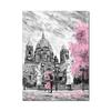Solid Wood Frame Set Canvas Painting Pink Trees Tower Lovers With Umbrella Modern Street Wall Art Posters And Prints Home Decor