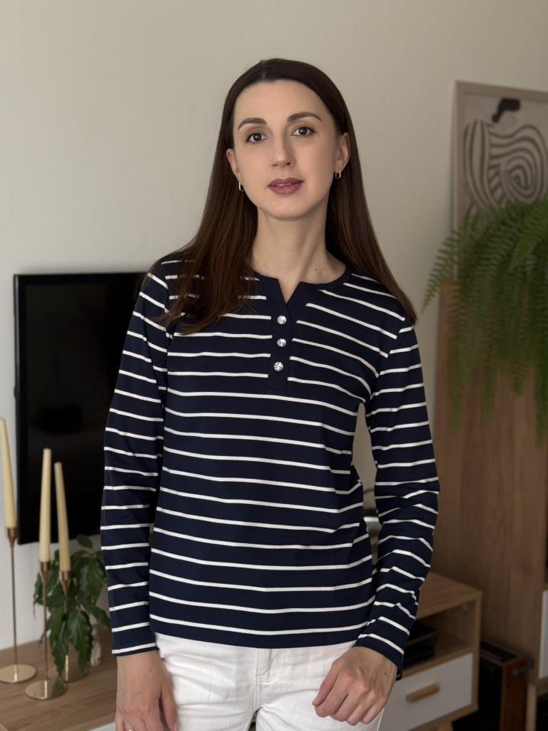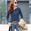 V-neck Cotton Women T-Shirt Long Sleeve Striped T Shirt 2023 Spring Autumn Female Clothes Fashion Top Tee Lady Tops 7215