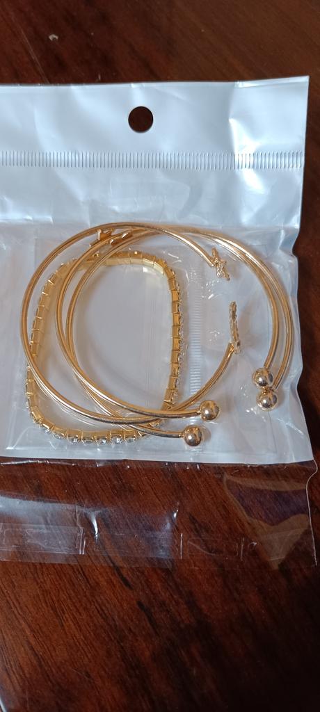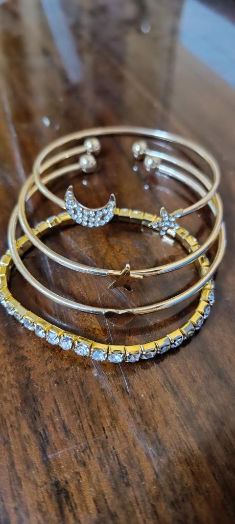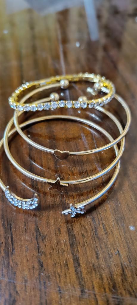 🛍️A set of bracelets for women and girls🛍️ Rating: ⭐⭐⭐⭐⭐ 👈 These tires are very beautiful! It comes in a set of four bracelets, one with a heart, one with a star, one with a star and moon and the fourth with sparkling stones. I really liked the design and I chose the gold color, it is very beautiful on the hand (: • The bracelets are very beautiful to wear and you can also use them to bring them as a gift • The bracelets are high quality. • The bracelets came to me in protected delivery. 👈 Many thanks to RUI RUI YU for sending me this amazing necklace! Highly recommended to buy🛍️
