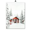 Wall Art Canvas Painting Christmas Tree Red House Squirrel Deer Living Room Decoration Posters And Prints Home Wall Pictures
