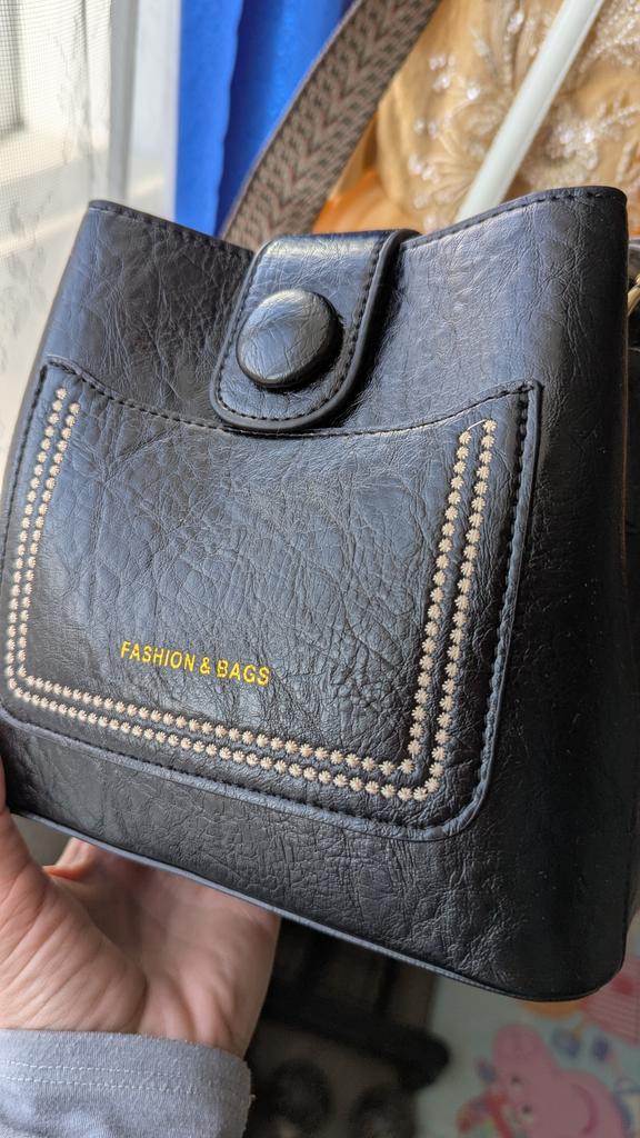 The bag is good, just the size I wanted, so that it is not big, and you can comfortably take something with you. There is a pocket on the snake in the middle, the seller put a hair band as a gift. I am satisfied with the product👐🤍