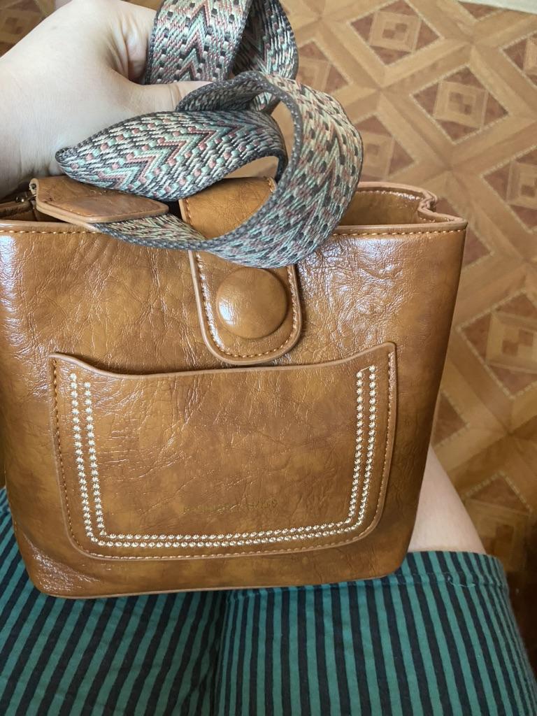 The bag is beautiful. Comfortable, the strap doesn't slip off the shoulder, it would be even better if it were longer. The size is small, but roomy. Very satisfied with the purchase. The ginger bag looks more expensive than its price. Thank you.8