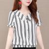 Korean Version Striped Shirt Short Sleeved Short Doll Neck Bottoming Blouse Summer New Top M-3XL