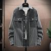 Spring and Autumn Striped Jacquard Denim Shirt Men's Loose Thickened Casual Coat