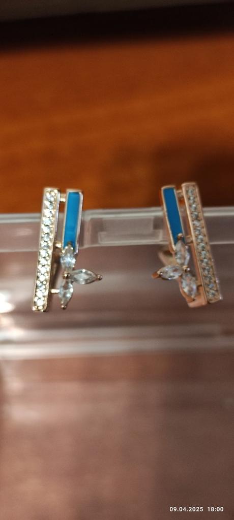 Blue Enamel Full Zircon Square Geometric Earrings for Women Fashion Girls Party Earrings Jewelry