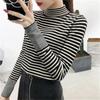 Autumn Winter New Half High Collar Striped Knitted Bottom Shirt Women's Loose Inner Pullover Sweater Top