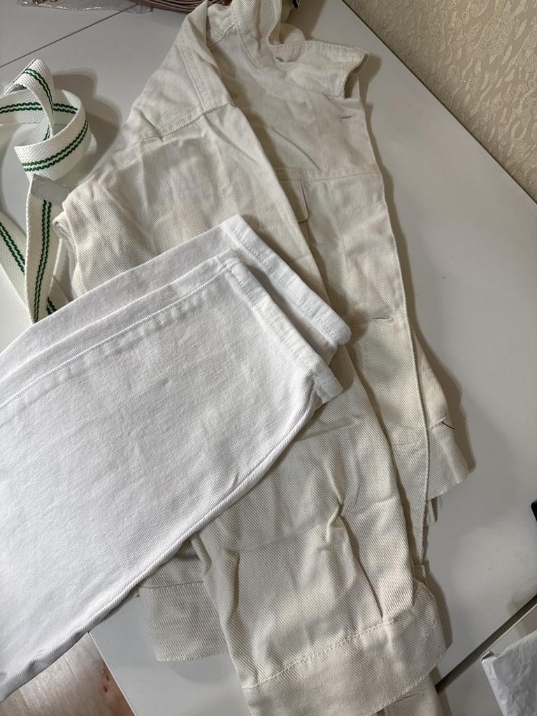 The jacket fits just right, but it's not denim, it's cotton, even see-through, a rare fabric.