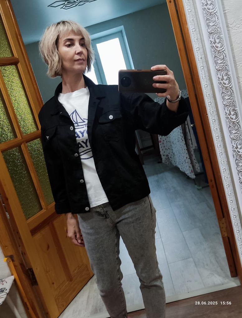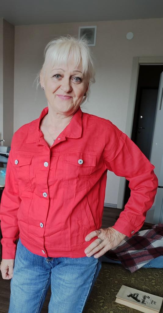 Color and size as stated by the Seller. The sewing is neat, the stitches are even.. For height 170 cm, weight 58 kg, OG 90, OT 68, OB 98 size L is loose, you can also wear a warm sweater. It's more likely not a denim jacket, but a shirt made of cotton fabric without a lining, the density of the fabric is average - for the warm spring and summer season, just the thing. I recommend the Seller for purchase and thank you JOOM)