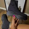 Autumn New Large Thick Sole Knitted Short Boots Women's Round Head Mid Heel Short Sleeve Women's Boots