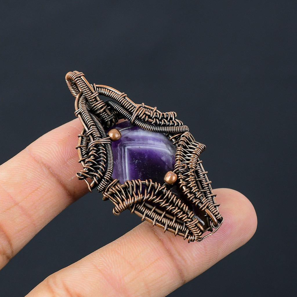 Purple Dendrite Opal Gemstone Pure Copper Wire Wrapped Handmade Pendant Jewelry Gift