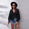 GMXIA Women's Fashion Casual Solid Color Print Long Sleeve POLO Neck Blouses & Shirts