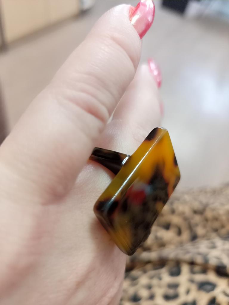 Tortoiseshell Rectangle Elegant Acrylic Finger Rings Resin Rings Leopard Pattern Fashion Jewelry