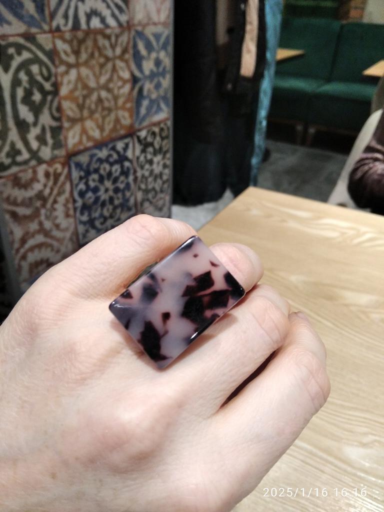 The ring is very beautiful, but very small in size, about 16.5 at most. It only suited me on my ring finger, and I love wearing such large rings on my index finger (.