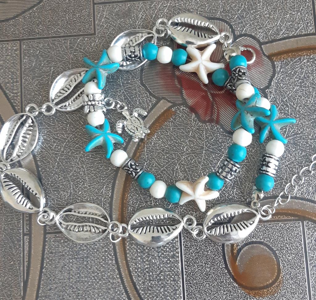 Shell Beach Starfish Jewelry Turtle Pendant Bracelet 2-piece Couple Gift Set Women Fashion Elegant Anklet