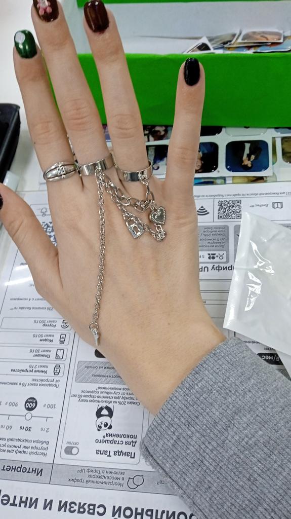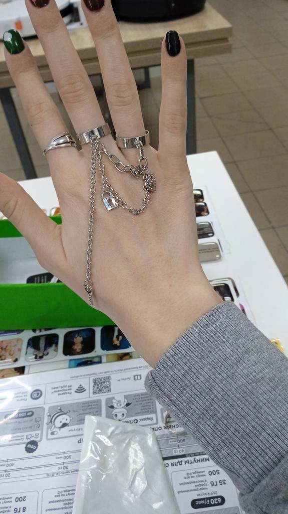 Pretty design, the rings are adjustable depending on people who have thicker or thinner fingers.