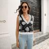 GMXIA Women's Fashion Casual Mushroom Printing Autumn Winter Sleeveless V-Neck Knitted Vests