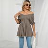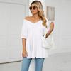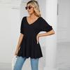 GMXIA Women's Fashion Casual Solid Color Print Short Sleeve V Neck Blouses & Shirts