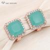 Fashion Square Pink Crystal Drop Earrings For Women Trendy Jewelry Rose Gold Color Wax Inlay Cubic Zirconia Eardrop