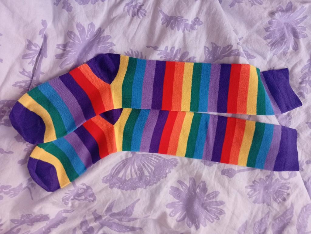 Funny Women Socks Long Rainbow Striped Cotton Fashion Colorful Thigh High Stocking Skateborab For Hiphop Girls Over Knee Socks