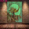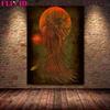 Moon Demon and Horror Wizard Vintage Wall Art Oil Painting Skeleton Demon Gothic Dark Art Poster