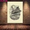 Baba Yaga Swamp Cottage and Pest Doctor Vintage Wall Art Canvas Printed Jungle Witch Magic Animal Elements Art Poster